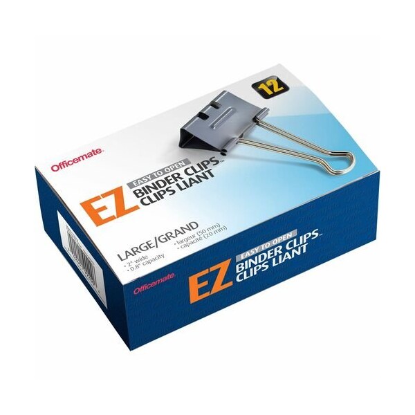 Officemate Binder Clips,Effortless,Large,1'' Capacity,2''W,12/BX,GY CLIP,BNDR,EZ,LARGE,12CT