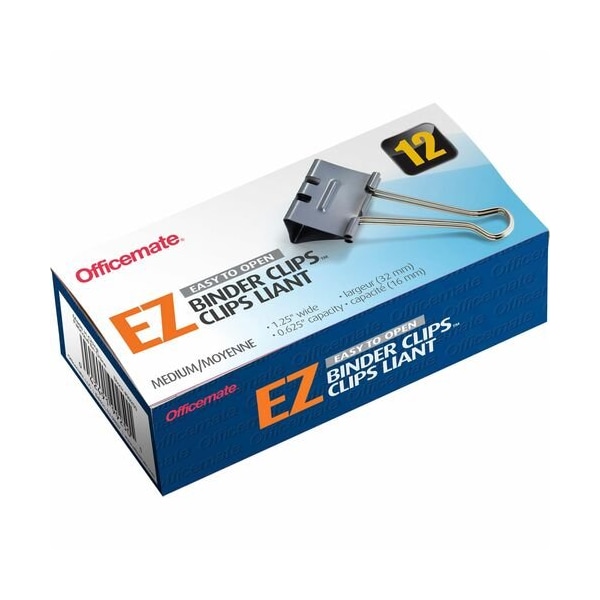 Officemate Binder Clips,Effortless,Med,5/8'' Capacity,1-1/4''W,12/BX,GY CLIP,BNDR,EZ,MEDIUM,12CT