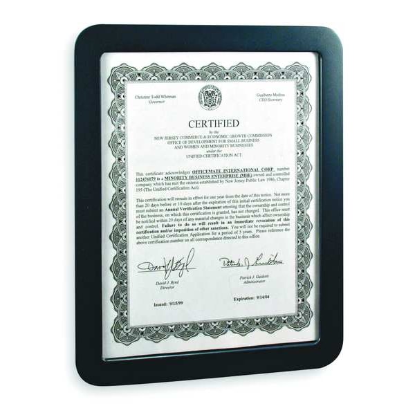 Certificate Holder, Material Plastic, Color Gray, Height 10 in, Width 12 1/2 in, Depth 1/2 in