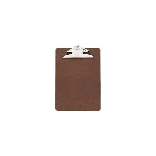 Officemate hardboard clipboard, 6" x 9", brown hardboard clipboard features a 6" rust-resistant clamp that holds up to 1" of paper securely in place. Design includes a smooth top and bottom, beveled edges and a hanging hole. Clipboard is made from high-quality, brown hardboard and designed for maximum durability. Hardboard contains a high percentage of recycled or recovered wood material.