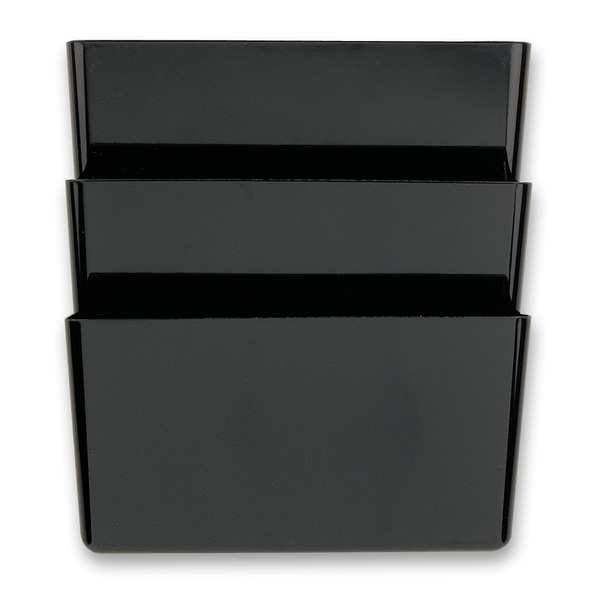Wall File, Material Plastic, Color Black, Height 7 in, Width 13 in, Depth 4 1/8 in, Number of Compartments 3, Includes Double-Sided Tape
