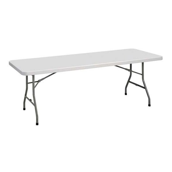 The Blow Molded Folding rectangular table is useful in a variety of settings that include banquet halls, conference centers, cafeterias, schools and in the home. Its features include a surface constructed of durable plastic and powder-coated wishbone legs that are easy to fold. The plastic surface resists stains and cleans with mild dish soap. The tables are 40% lighter than comparable wood tables. When the table is not in use, a spring clip will lock the table legs in a folded position for quick and easy storage. This table is commercial grade to withstand everyday use in the hospitality industry or in the home. Perfect for outdoors or indoors, these light-weight OfficeSource tables constructed of durable plastic will not chip, crack or warp over time.