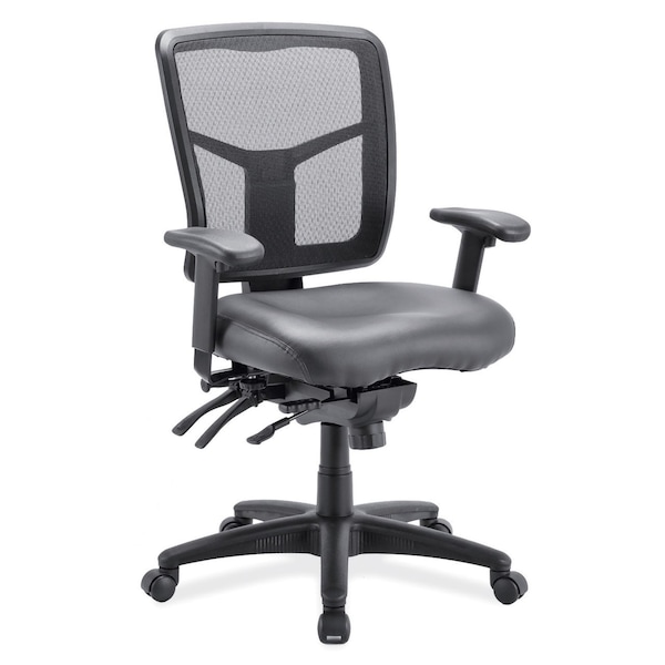 Are you looking for the perfect office seating? This mid back chair by OfficeSource is for you! This chair not only adds to the aesthetic appeal of the room, but also offers a variety of comfort features. You can use this chair at libraries, work stations, home offices, meeting rooms and more. This chair comes with a wide seat for a comfortable seating experience, further elevated by the mesh back design. The breathable mesh lets the air reach and cool your back, making the seating more comfortable. The ergonomic design further adds to the great seating experience. You have the option to adjust the height of the seat and arms. The seat comes in a stylish black leather for a more sleek, professional look.