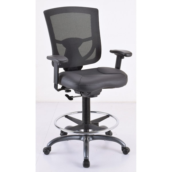 CoolMesh Pro Back Stool with Adjustable Arms, Upholstered Leather Seat, Footring and Black Base
