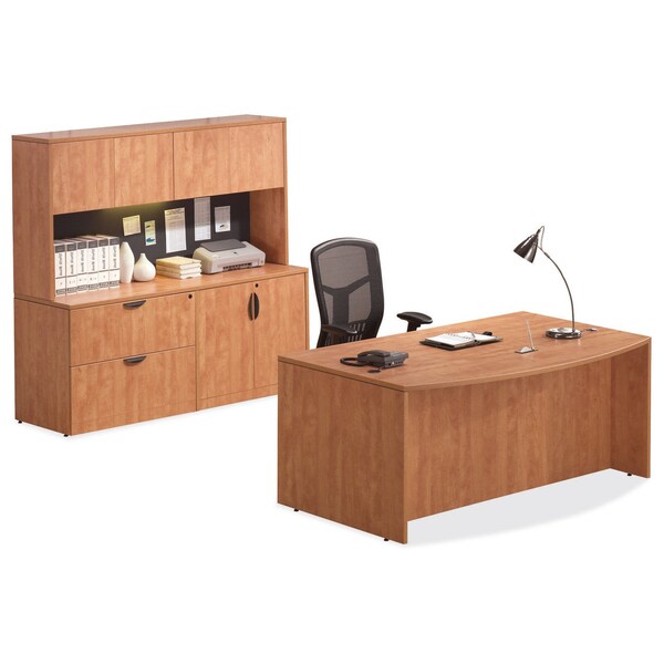 Cool, contemporary, and fully functional, this typical will help to ensure that your work space is the productive zone that you need it to be. With a spacious bow front desk, this typical will ensure you have a warm and welcoming area for guests and business meetings. This typical will give you everything that you need to organize your office essentials, while also giving you full-sized filing cabinet drawer space. The large lateral file drawers will help you to keep your files neatly organized. The open hutch and storage cabinet will give you ample storage space so that you can keep your office free from clutter. This typical is available in eight beautiful finish colors, so you can choose the one that best matches your existing office decor.