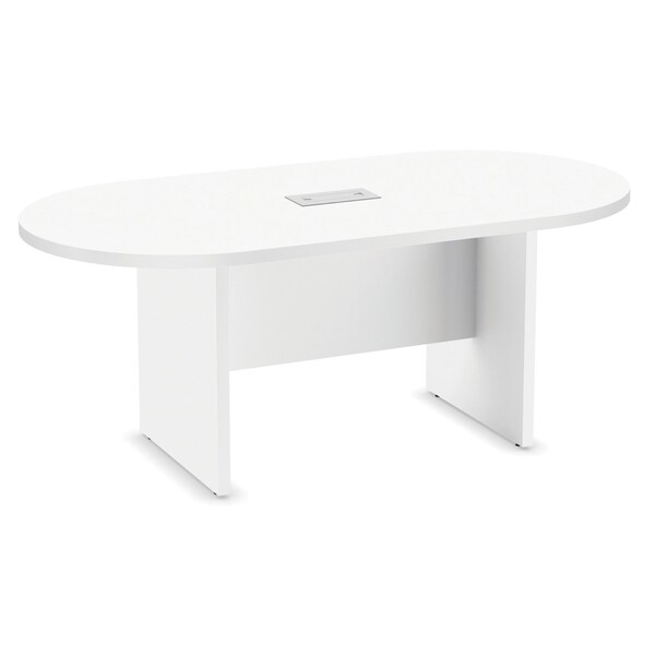 This racetrack conference table with a matching slab base from OfficeSource is the finishing touch your conference room needs. It is composed of high quality products, and the table will last you a long time. This racetrack conference table is available in eight finishes to match any existing conference room furniture. The convenient design of this table encourages communication between seated members. The structural integrity of the table is impeccable, you can feel how well-made it is when you press your hands on it.