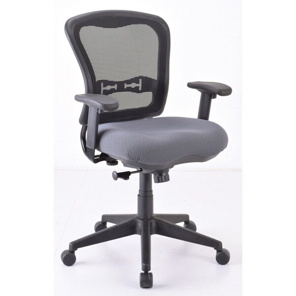 Durable construction and comfort design | Black mesh back, for breathability | Comfortable upholstered seat | Pneumatic adjustable seat height | Height and width adjustable arms | Overall dimensions: 26 1/2"W x 25"D x 36 3/4"-40 1/4"H | Seat dimensions: 20 1/2"W x 19 1/2"D x 20-25"H