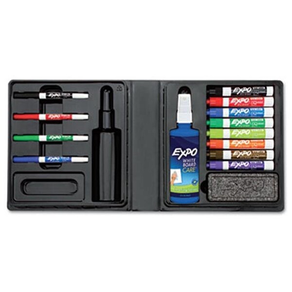 Contains everything you need for effective, colorful presentations. 14-piece kit includes one fine tip point four-color low odor set in black, blue, green and red; one chisel tip eight-color low odor set in black, blue, green, lime, orange, red, purple and brown; one eraser and one 8-oz. bottle of Mild Formula original cleaner. Convenient deluxe lightweight case for storage. Quick-drying, smear proof, ink provides consistent color quality. Marker Type: Dry Erase Kits; Assortment: 2 Black; 2 Blue; 2 Green; 2 Red; Color(s): Assorted; Tip Type: Chisel/Fine.