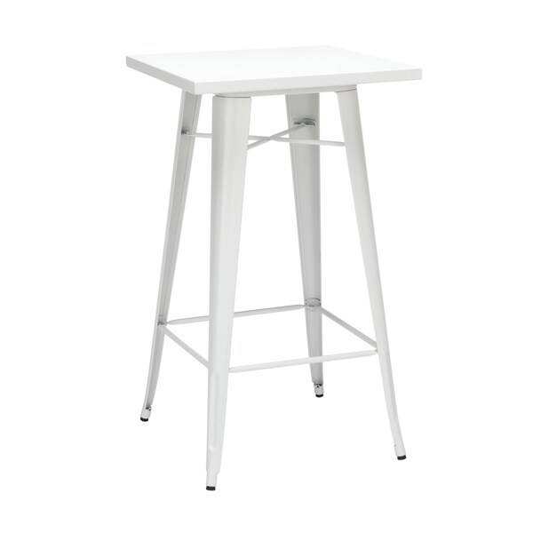The 161 Collection blends mid century modern and industrial modern styles with current design trends to create timeless pieces that will seamlessly complement any decor. The OFM 161 Collection Industrial Modern 24" Square Bar Table with Footring, in White, is perfect for indoor or outdoor applications because its galvanized steel is coated in an anti-UV powder that helps prevent heat retention, ensuring you stay cool no matter the amount of shade. The cafe height table features a unique footrest that's 11.5" from the ground and wraps around the entire base of the table, so you can rest a foot whether you're standing or sitting. This outdoor bar table is 41" high and features a matte White finish that is easy to clean. The table has an x-brace that provides additional support and stability, allowing it to hold up to 200 lb. This bar height table comes with plastic, non-marring protective floor glides that help prevent sliding and scratching. This pub table has a full BIFMA rating and is backed by our 5 Year Limited Warranty.