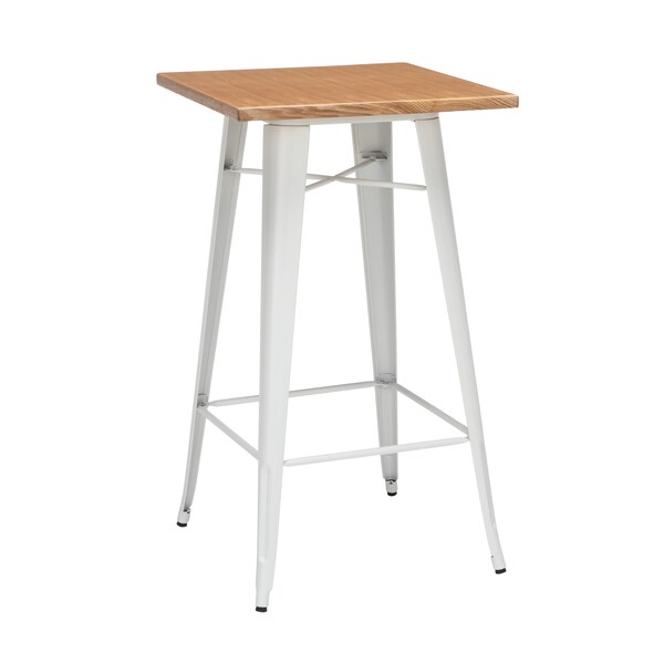 24" Square White Metal Bar Table with Wood Top (Discontinued)