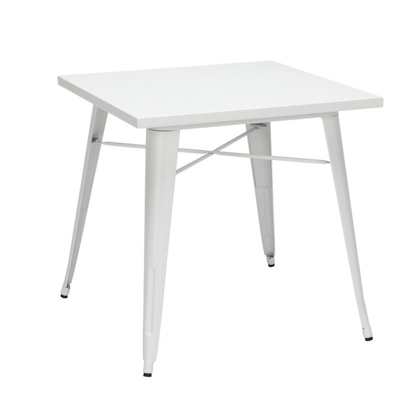 The 161 Collection blends mid century modern and industrial modern styles with current design trends to create timeless pieces that will seamlessly complement any decor. The OFM 161 Collection Industrial Modern 30" Square Dining Table is a blank slate that pairs perfectly with any chair from the 161 Collection. With a distinctively industrial flare, this table doesn't just look rugged, it weathers the outdoor elements beautifully because it's made of galvanized steel and is coated in an anti-UV powder that prevents heat retention. The square 30" x 30" standard height dining table features a matte White finish, is easy to clean, and is perfect for kitchens, cafes, dining rooms, pubs, bistros, and restaurants. With a reinforced x-brace beneath the table top, the table is sturdy and can hold up to 200 lb. The patio table features plastic, non-marring protective floor glides and measures 30.0 D x 30.0 W x 30.0 H. This quality table has a full BIFMA rating and is backed by our 5 Year Limited Warranty, to provide years of use.