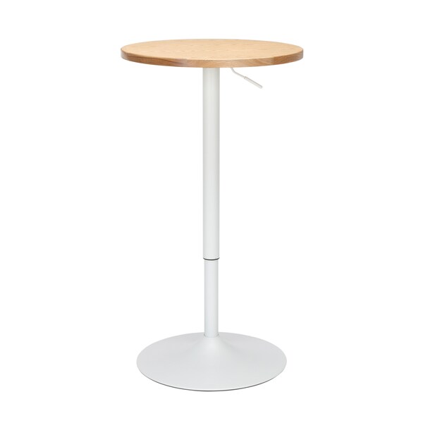 The 161 Collection blends mid century modern and industrial modern styles with current design trends to create timeless pieces that will seamlessly complement any decor. The OFM 161 Collection Industrial Modern 33" to 42" Adjustable Pub Table provides a blank canvas that pairs beautifully with any of the stool seating from the 161 Collection. The pub table's height adjusts from 33" to 42" to accommodate different height needs; the handle sits below the tabletop for easy access. The trumpet base features a matte White finish while the table top showcases a light Natural stain. The cafe table is quick and easy to assemble in 5 minutes or less. The trumpet base provides ample support and features a plastic ring that helps prevent sliding and surface scratching. The table holds 200 lb and measures 23.6 D x 23.6 W x 33.5-43.5 H. This bistro table has a full BIFMA rating and is backed by our 5 Year Limited Warranty.