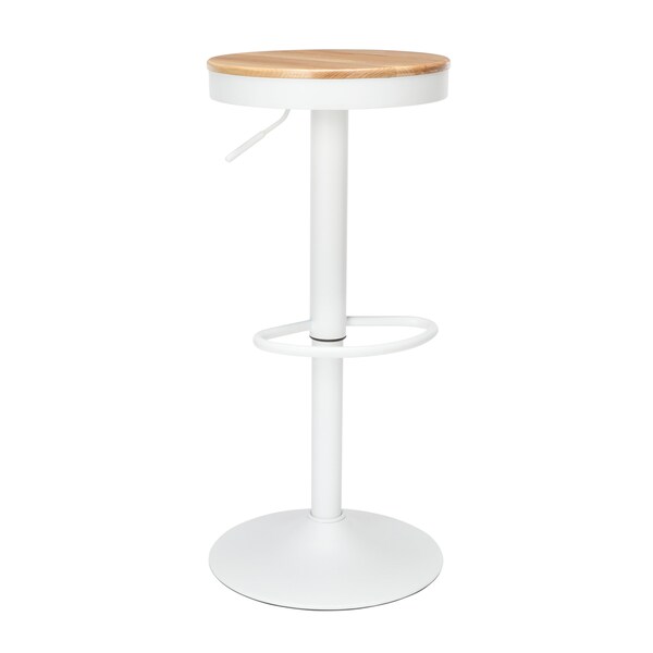 The 161 Collection blends mid century modern and industrial modern styles with current design trends to create timeless pieces that will seamlessly complement any decor. The OFM 161 Collection Industrial Modern Backless 23" to 32" Adjustable Bar Stool, 2 pack, is the quintessential industrial modern accent where wood meets metal in a minimalist form. This pneumatically adjustable height stool adjusts from 23" high to 32" high to accommodate a wide range of users. The adjustment handle is easy to access beneath the seat. The welded foot rest features a seat-to-footrest span of 16" for the optimal comfort distance. The bar stool features a trumpet base that provides sturdy support, features a plastic ring that helps prevent sliding and scratching, and is easily assembled in 5 minutes. The stool base features a matte White finish that is paired with a Natural finish for the wooden seat. The stool holds 250 lb and measures 15.2 D x 15.2 W x 23-32 H. With a 5 Year Limited Warranty and testing to light commercial-grade standards, this bar stool provides the functionality you need without the fuss.