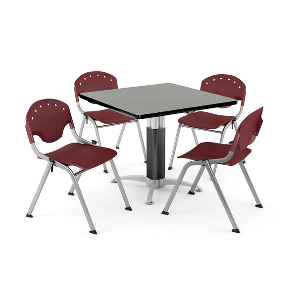 Break Room Table/Chair Set,36 In. sq.,Gray