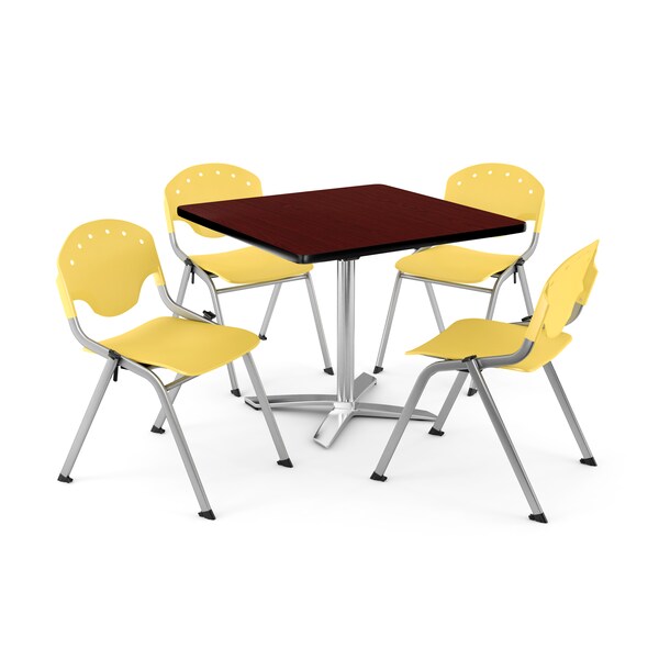 Break Room Table/Chair Set, 36" sq., Mhgny (Discontinued)