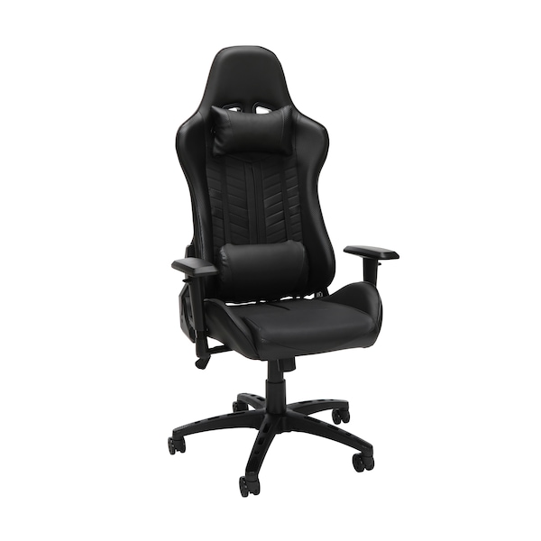 The Essentials by OFM Model ESS-6065 Racing Style Gaming Chair has a 180 degree reclining back angle adjustment. Its additional swivel/tilt control is manipulated with tension adjustment. This gaming chair has adjustable arm height and a folding base. The steel tube frame construction is ergonomically shaped to hold you in position. Also features adjustable lumbar and headrest pillow. Backed by our Essentials by OFM Limited Lifetime Warranty.