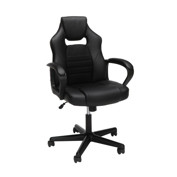 The Essentials by OFM seating collection is where quality meets value - and now it's taking the desk chair to a whole new level with the ESS-3083. Designed in an ergonomic racecar style with contoured segmented padding an integrated headrest and lumbar support, this chair provides high-performance comfort whether used during intense gaming sessions or long workdays. Equipped with fixed padded arms which are looped for added durability. Additional features include seat height adjustment, tilt with tilt-tension control and 360-degree swivel. SofThread Leather and contrasting color mesh upholstery complete the modern, high-quality look and feel of the ESS-3083. The comfort, style, and competitive price of this chair make it a perfect addition to your home or office. This chair meets or exceeds industry standards for safety and durability, and is backed by our Essentials by OFM Limited Lifetime warranty. The ESS-3083 has a 250 pound weight capacity.