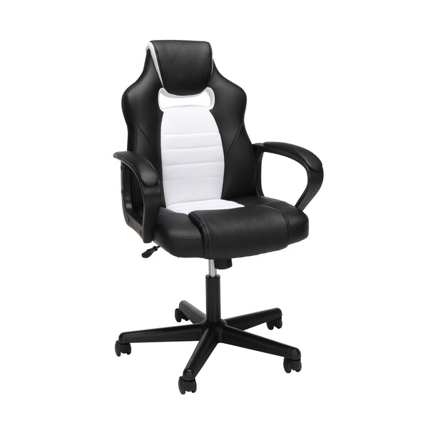 The Essentials by OFM seating collection is where quality meets value - and now it's taking the desk chair to a whole new level with the ESS-3083. Designed in an ergonomic racecar style with contoured segmented padding an integrated headrest and lumbar support, this chair provides high-performance comfort whether used during intense gaming sessions or long workdays. Equipped with fixed padded arms which are looped for added durability. Additional features include seat height adjustment, tilt with tilt-tension control and 360-degree swivel. SofThread Leather and contrasting color mesh upholstery complete the modern, high-quality look and feel of the ESS-3083. The comfort, style, and competitive price of this chair make it a perfect addition to your home or office. This chair meets or exceeds industry standards for safety and durability, and is backed by our Essentials by OFM Limited Lifetime warranty. The ESS-3083 has a 250 pound weight capacity.
