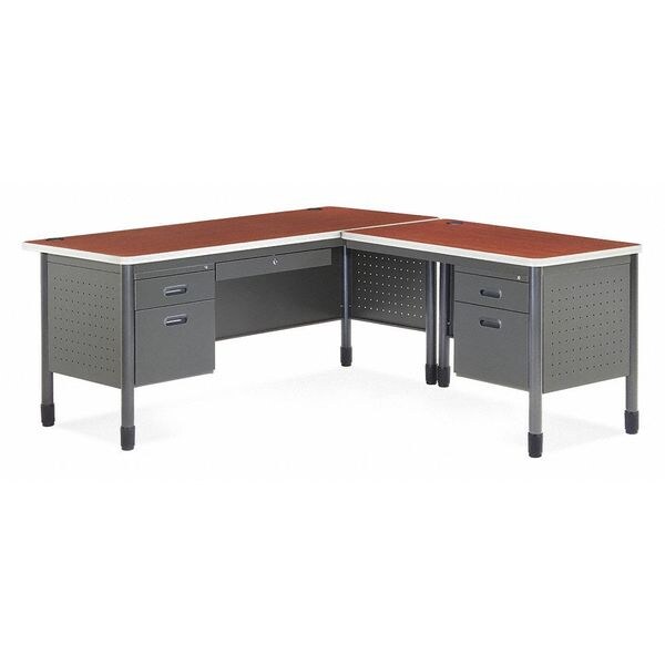 L-Shape Desk, Number of Drawers 5, Number of Pedestals 2, Overall Depth 25-1/4 in to 29-3/4 in, Overall Height 29 in, Overall Width 67 in, Pedestal Location Right, Standards ANSI/BIFMA, Assembly Required