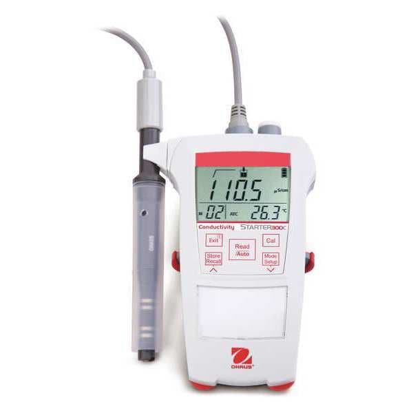 Conductivity Meter, Electric Conductivity Range 00.0 uS/cm to 199.9 mS/cm, TDS Range 0.1mg/L to 199.9g/L, Waterproof IP54, Automatic Temperature Compensation Yes, Operating Temp. Range (F) 32 Degrees to 104 Degrees , Operating Temp. Range (C) 10 Degrees to 40 Degrees , Display LCD Backlight, Auto Power Off No Auto Power Off, Memory 30 Data Sets, Temperature Compensation Range Automatic or Manual, Calibration 3 point, Cable Length 1 m, Power Source (4) AAA Batteries, Includes Electrode (STCON3)