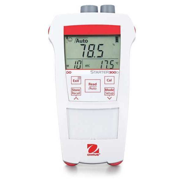 Handheld Dissolved Oxygen Meter, Dissolved Oxygen Range 20 to 45 mg/L, Waterproof IP54, Automatic Temperature Compensation Yes, Operating Temp. Range (F) 50 Degrees to 104 Degrees , Operating Temp. Range (C) 5 Degrees to 40 Degrees , Display LCD, Auto Power Off Auto Power Off, Memory 30 Data Sets, Calibration 1 or 2 point, Power Source (4) AAA Batteries, Manufacturers Warranty Length 1 yr, Number of Tests 0