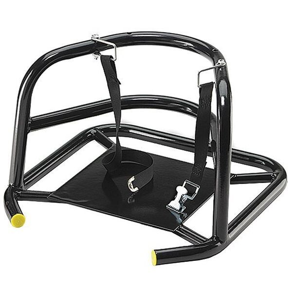 Gas Cylinder Stand, Number of Cylinders Held 1, Compatible Cylinder Diameter (Maximum) 10 in, Compatible Cylinder Diameter (Minimum) 7 in, Cylinder Securing Mechanism Strap with Cinch Buckle, Material Cast Aluminum, Overall Height 10 3/4 in, Overall Width 17 1/4 in, Overall Depth 17 1/4 in, Mounting Location Floor, Color Black, For Use With Gas Cylinders