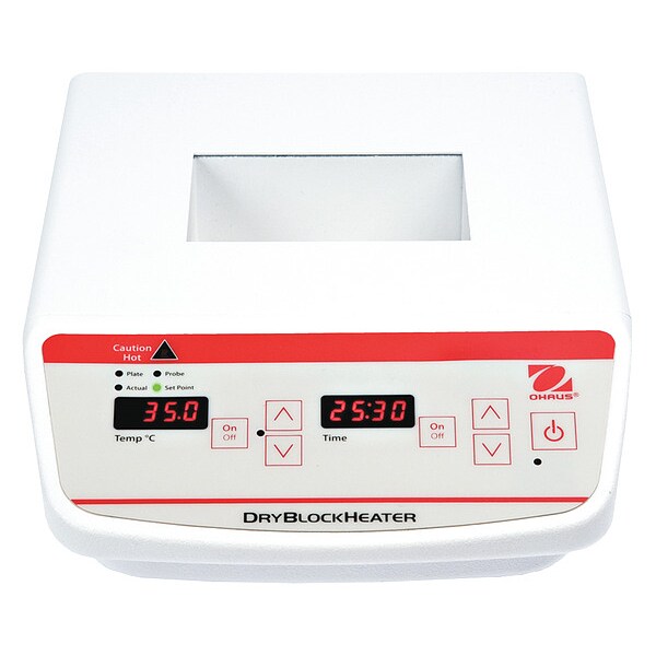 Heat Block, Material Steel, For Use With Dry Block Heaters, Temp. Range (C) Ambient 5 Degrees to 120 Degrees , Max. Temp. (C) 120 Degrees C, Accuracy +/-0.1 Degrees C, Voltage (AC) 120, Height 3.5 in, Width 8 in, Depth 12.5 in, Base Material Steel, Compliance CE, TUV