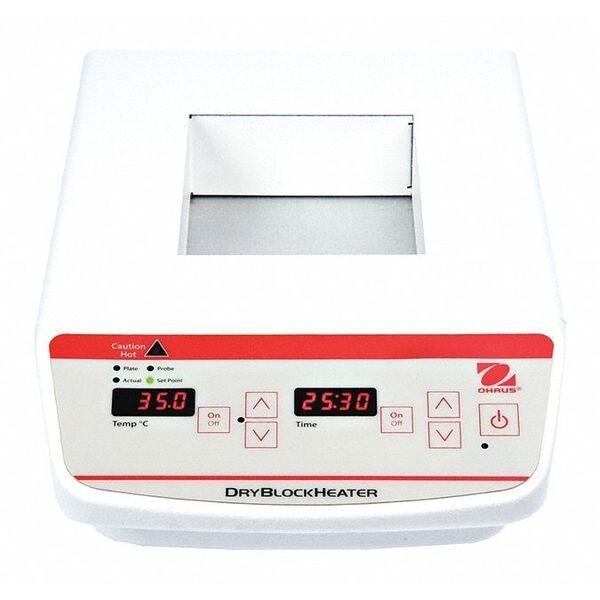 Heat Block, Material Steel, For Use With Dry Block Heaters, Temp. Range (C) Ambient 5 Degrees to 120 Degrees , Max. Temp. (C) 120 Degrees C, Accuracy +/-0.1 Degrees C, Voltage (AC) 120, Height 3.5 in, Width 8 in, Depth 15.5 in, Base Material Steel, Compliance CE, TUV