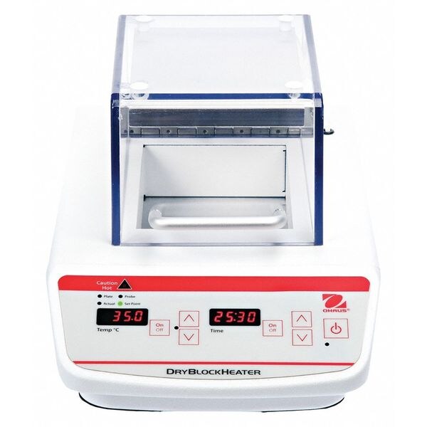 Heat Block, Material Steel, For Use With Dry Block Heaters, Temp. Range (C) Ambient 5 Degrees to 100 Degrees , Max. Temp. (C) 100 Degrees C, Accuracy +/-0.1 Degrees C, Voltage (AC) 120, Height 7 in, Width 8 in, Depth 15.5 in, Base Material Steel, Compliance CE, TUV