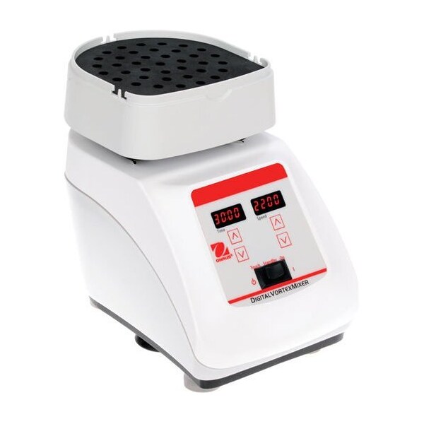 OHAUS Heavy-Duty Vortex Mixers feature a robust design and the highest quality motor to permit continuous-duty operation with accessories over the entire speed range. Digital models offer a timer and exact speed control when applications demand repeatable results. Non-digital variable speed models are an economical alternative. A wide range of accessories are available for microtubes, microplates and a variety of tube sizes from 0.5 to 50 ml.Safe to mix at high speeds - the unique locking design of the mixer accessories allows the mixer to safely operate throughout the entire speed range.For the most demanding applications, these mixers utilize a high quality German-manufactured motor, allowing for continuous duty operation and increased load capacities up to 1.1 kg.Robust digital and non-digital models offer effective speed control from low rpm for gentle shaking to high-speed mixing for vigorous vortexing of difficult samples.