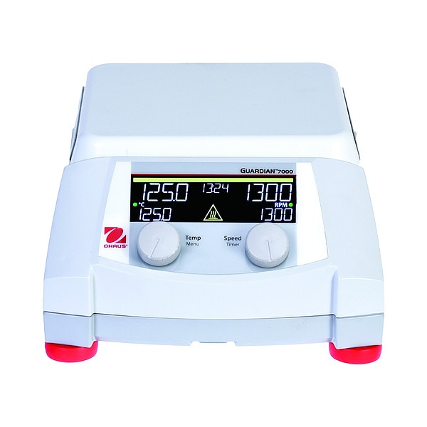 Hot Plate Stirrer, Temp. Range (C) 5 Degrees to 500 Degrees , Temp. Range (F) 41 Degrees to 932 Degrees , Plate Length 7 in, Plate Width 7 in, Plate Shape Rectangular, Plate Material Ceramic, Load Capacity - English 3.96 lb, Load Capacity - Metric 15 L, Overall Height 4 3/4 in, Overall Length 12.2 in, Overall Width 8 3/4 in, Number of Stirring Positions 1, Variable Speed Yes, Speed 60 to 1600 rpm, Auto Shutoff Yes, Includes Timer Yes, Voltage 120V AC, 10 A Amps, 1,080 W Watts, Resists Chemicals