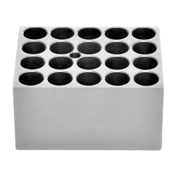 TypeBlock Sample Type 15mm VialNumber of wells 20Well Diameter 15.8mmWell Depth 35mmSize 1 Block Thermometer Well Yes MaterialAluminum Anodized