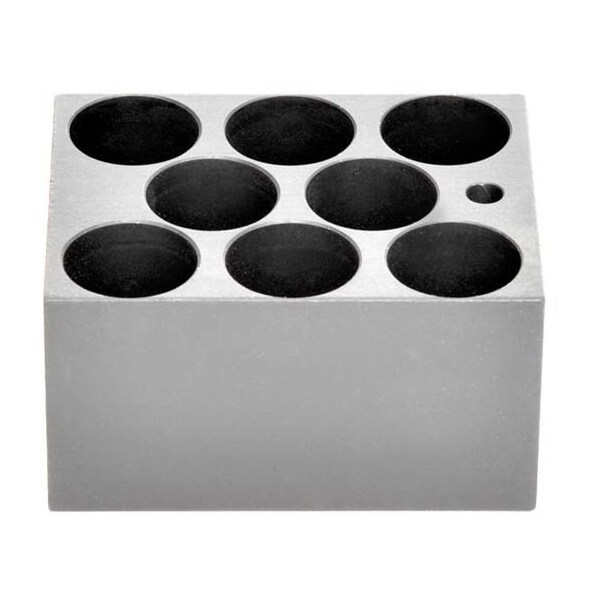 TypeBlock Sample Type 25mm VialNumber of wells 8Well Diameter 25.8mmWell Depth 45mmSize 1 Block Thermometer Well Yes MaterialAluminum Anodized