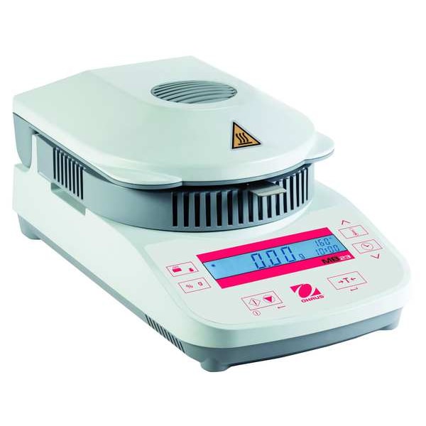Moisture Analyzer, Max. Capacity 110 g, Drying Temp. Range 50 Degrees to 160 Degrees C, Readability 0.1 Percent, Moisture Measurement Accuracy 0.1 Percent, Platform Material ABS Plastic, Interface - Lab Equipment RS232, Overall Height 5 in, Overall Length 11 in, Overall Width 6 1/2 in, Drying Chamber Dimensions 3.5 in, Drying Power Infrared, Max. Drying Time 99 min, Moisture Measurement Repeatability 0.300 Percent to 2.000 Percent, Pan Dimensions 3.50 in dia