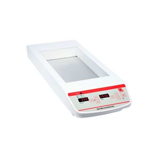 Ohaus hb6dg dry block heater, 6 block, digital, 120v versatile dry block heaters are ideal for applications that require temperature stability. All units hold one optional interchangeable modular block with over 40 choices. Blocks are easy to use, no tools required. Close tube-to-block contact enables maximum heat retention, resulting in efficient heating. Digital models offer exceptional temperature uniformity and stability for repeatable results, while non-digital models are an economical choice. applications: incubation & activation of cultures, enzyme reactions, immunoassays, melting/boiling points, isothermal incubations, nucleic acid denaturation display: led display (digital models) and dual-adjustment knobs with dial markings (analog models) operation: detachable 3-wire cord and plug (included), analog models require an external thermometer or temperature device for temperature setpoint construction: painted steel housing, support rod holder with locking knob design features: touchpad control and audible alarm (digital models)