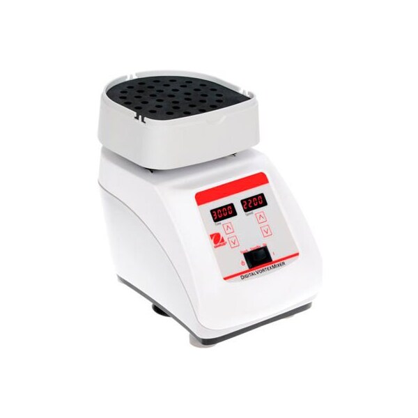 Ohaus vxhddg heavy-duty vortex mixer, digital, 120v ohaus heavy-duty vortex mixers feature a robust design and the highest quality motor to permit continuous-duty operation with accessories over the entire speed range. Digital models offer a timer and exact speed control when applications demand repeatable results. Non-digital variable speed models are an economical alternative. A wide range of accessories are available for microtubes, microplates and a variety of tube sizes from 0.5 to 50 ml. applications: elisa assays, pcr preparations, digestions, cell disruptions display: independent led displays for speed/time allow the operator to view both settings simultaneously (digital models) and adjustment knob with dial markings for variable speed control (analog models) operation: detachable 3-wire cord and plug (included) construction: cycoloy, touch/standby/on rocker switch (both models) design features: universal holder, foam insert for (38) 1.5 to 2 ml microtubes, universal cover and cup head (included)