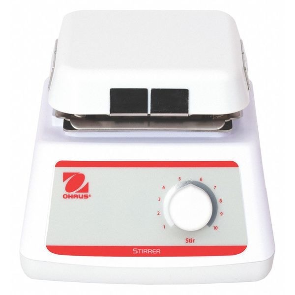 Hot Plate Stirrer, Plate Length 4 in, Plate Width 4 in, Plate Shape Rectangular, Plate Material Ceramic, Load Capacity - English 9 lb, Load Capacity - Metric 1 L, Overall Height 5 in, Overall Length 7.9 in, Overall Width 6 in, Number of Stirring Positions 1, Variable Speed Yes, Speed 100 to 1200 rpm, Auto Shutoff No, Includes Timer No, Voltage 120V AC, 0.25 A Amps, 20 W Watts, Resists Non-Acidic Water Base Liquids, Standards TUV