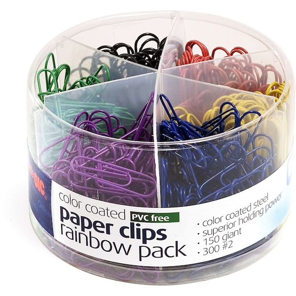 Clips,Paper,No.2,600pcs,Ast,PK450, Package Quantity 450