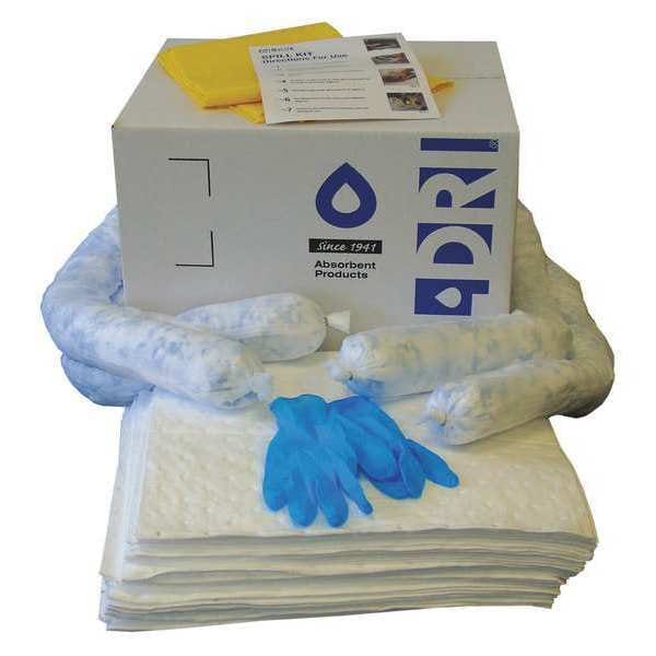 Spill Kit, Fluids Absorbed Universal, For Use With Chemical or Metal Type Oil Only, Specialized Applications Universal, Volume Absorbed Per Kit 10 gal, Container Type Box, 10 gal Container Capacity, 16 in W x 20 in L x 10 in H Container Size, White, Filled, Sorbents Included (30) Oil Only Bonded Pads, (4) Poly Socks (48 in), PPE Included (1) Pair Gloves, Product Weight 7 lb, Includes Mounting Fasteners No, Land Fill Disposable No