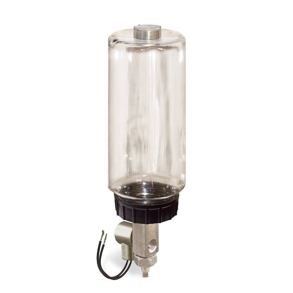 Item # B1733-0321B024DW, Full Flow Electro Dispenser, 1 qt Polycarbonate Reservoir With Swivel Lid, 24VDCFull Flow Electro Dispensers are especially suitable for intermittent operations. Lubrication occurs when the solenoid is activated .The reservoir and sight are vented to allow liquid to flow easily by gravity through the port. An additional valve is needed for the regulation of liquid flow, such as a valve brush .This lubricator features a polycarbonate reservoir, polypropylene base, aluminum alloy body, Buna-N seals, 1/4 female NPT outlet, 1/8 female NPT bottom outlet with pipe plug installed, and a 5/8-18 mounting shank. It features a cap that swivels out of the way for easier filling, while remaining attached to the reservoir .The solenoid has a 1/2 NPT thread for connecting with conduit and is powered by 24VDC please consult factory for additional voltages and frequencies. The diameter of the reservoir is 3 5/8 and the total height of the dispenser is 11 11/16 .