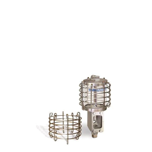 A stainless steel wire guard offers an extra level of protection for 9 oz. constant level lubricators located in exposed areas. It diverts potential blows away from the glass or acrylic reservoir. The American Petroleum Institute standard requires the use of such a protective guard for its centrifugal pumps. The Oil-Rite wire guard installs securely by hand with no tools required.