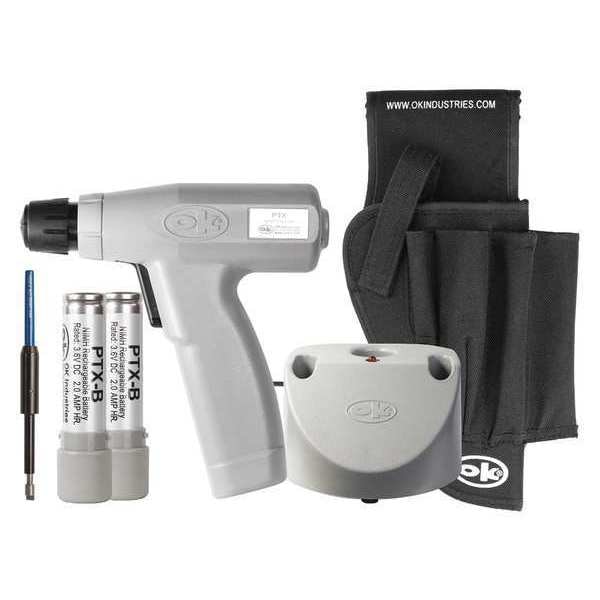 Cordless Wrap/Unwrap Kit, Power Source Cordless, Wrapping Terminal Hole Depth 1 in, Wrapping Terminal Hole Diameter 0.073 in, Maximum Insulation Diameter 0.03 in, Maximum Insulation Turns 1.5, Maximum Terminal Diagonal 0.073 in, Minimum Terminal Diagonal 0.06 in, Includes (2) PTX-B PTX Batteries, DFB224 Wrap/Unwrap Bit & Sleeve Set, H-1000 Rugged Nylon 5-Pocket Tool Pouch, PTX-BC2 PTX Battery Charger, Voltage 230 V, Wire Gauge Range 24 to 22 AWG, Number of Pieces 8, Power 3.6 V NiMH Battery