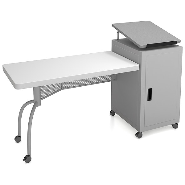 Desk and Lectern, Color Speckled Gray, Mobility Mobile, Material Plastic, Overall Height 30 in, Overall Width 68 in, Overall Depth 24 in, Includes Document Rail Yes, Shelf Width 22 in, Shelf Depth 19 in, Includes Sound System No