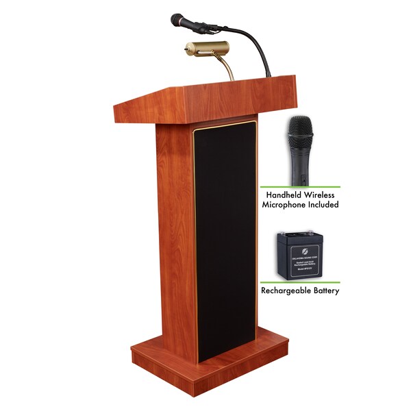 OS Orator Lectern, Recharge Battery with Wireless Hand Mic, Cherry (Discontinued)