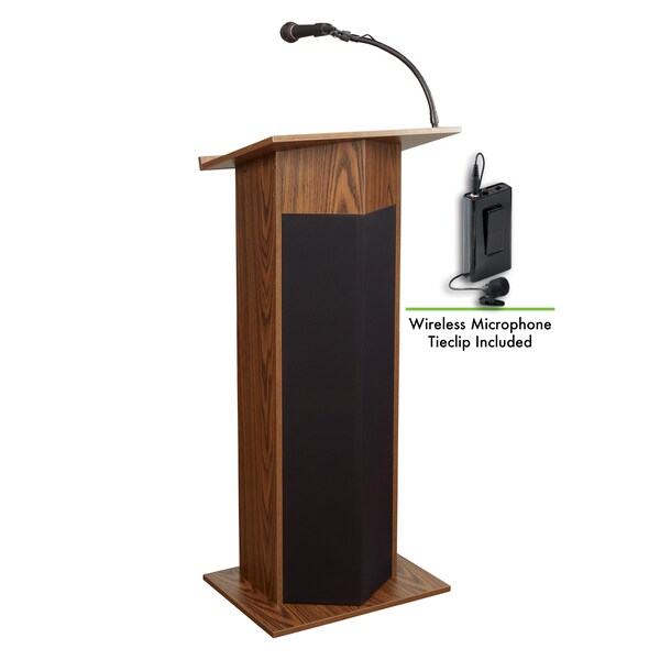 Power Plus Lectern With Wireless Tie Clip Mic, Oak (Discontinued)