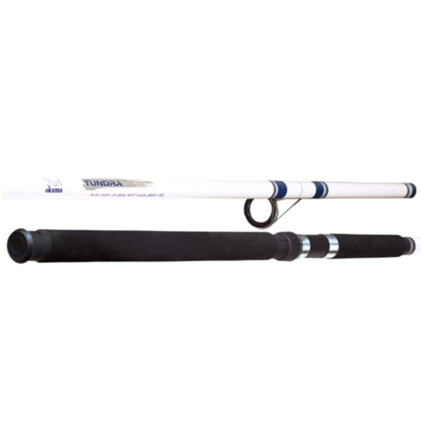 Tundra series combines durability and strength with a fast tip for sensitive action. The reinforced blanks are fitted with graphite and stainless steel reel seats and extra long full EVA grips for comfort. Aluminum oxide guides. Great for catfish! Length 12'0", Type: Spin, 2 pieces, Heavy Action.