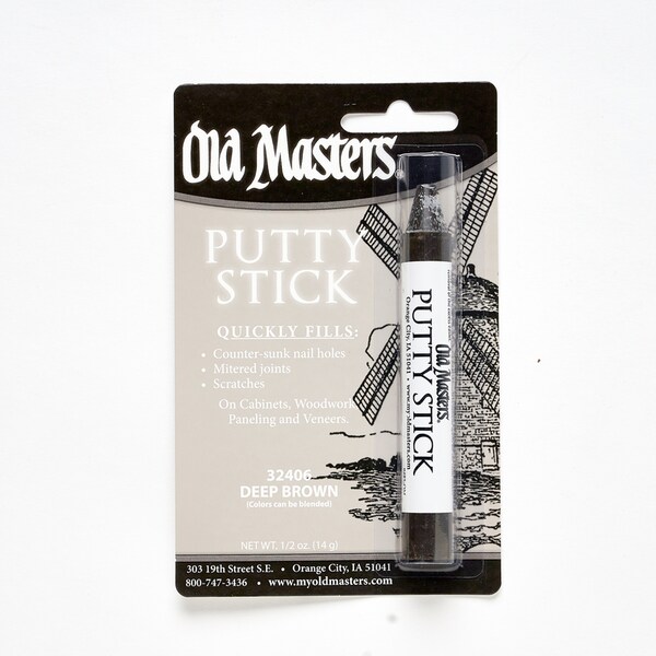 The Putty Stick as cover and fill unsightly nail holes and mitered joints quickly and easily on any wood project with Old Masters Putty Sticks. May also be used on vinyl, leather and various craft projects.