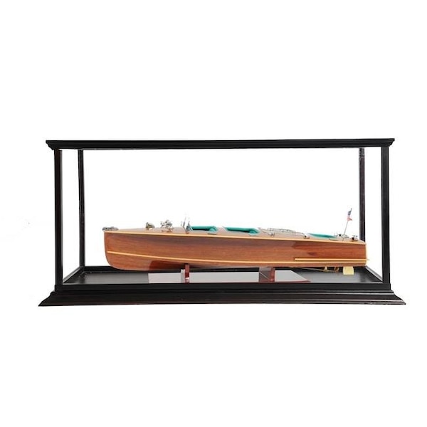 The Display Case: This beautiful display case was made out of hardwood and painted in dark mahogany color. It has distinctive designs that add elegance and beauty when displayed in your home or office. It comes with plexiglass panels on all sides. This case is very effective when it comes to preventing dust particles as well as keeping your valuable speedboat looking new and protected at all time. It is a must-have for model ship enthusiasts or passionate collectors.