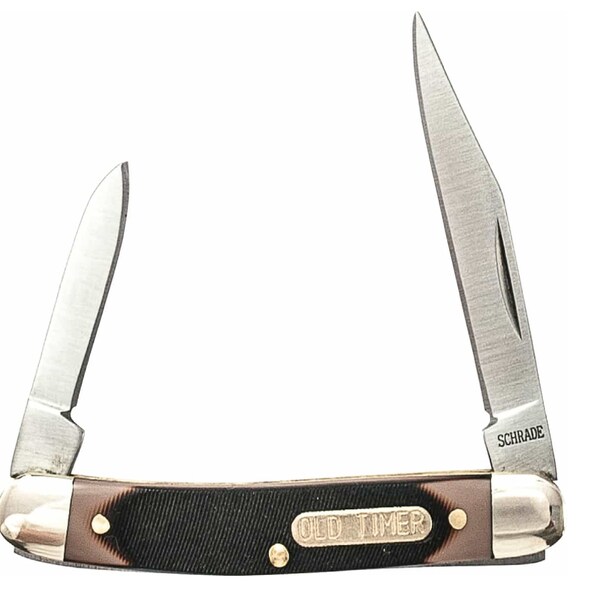 The Schrade Minuteman Fold Knife has a high carbon stainless steel blade. It is the number one selling family of pocket knifes. Two blades are included.