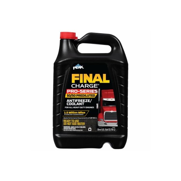 1 Gallon, FINAL CHARGE PROSERIES 5050 Prediluted AntifreezeCoolant is an advanced technology formula engineered to deliver the highest level of performance for today's heavy duty engines Its stabilized Phosphate enhanced Organic Acid Technology POAT corrosion inhibitor system provides fastacting, longlasting protection to all cooling system metals including Controlled Atmosphere Brazed CAB and cast aluminum components Scalefighting inhibitors help prevent deposit formation to maximize heat transfer FINAL CHARGE PROSERIES AntifreezeCoolant is free of nitrite and 2ethylhexanoic acid and is compatible with all system gaskets and hose materials With proper maintenance, FINAL CHARGE PROSERIES AntifreezeCoolant delivers cooling system protection for 15 million miles, 10 years, or 36,000 hours, whichever comes first, without the use of Supplemental Coolant Additives SCAs